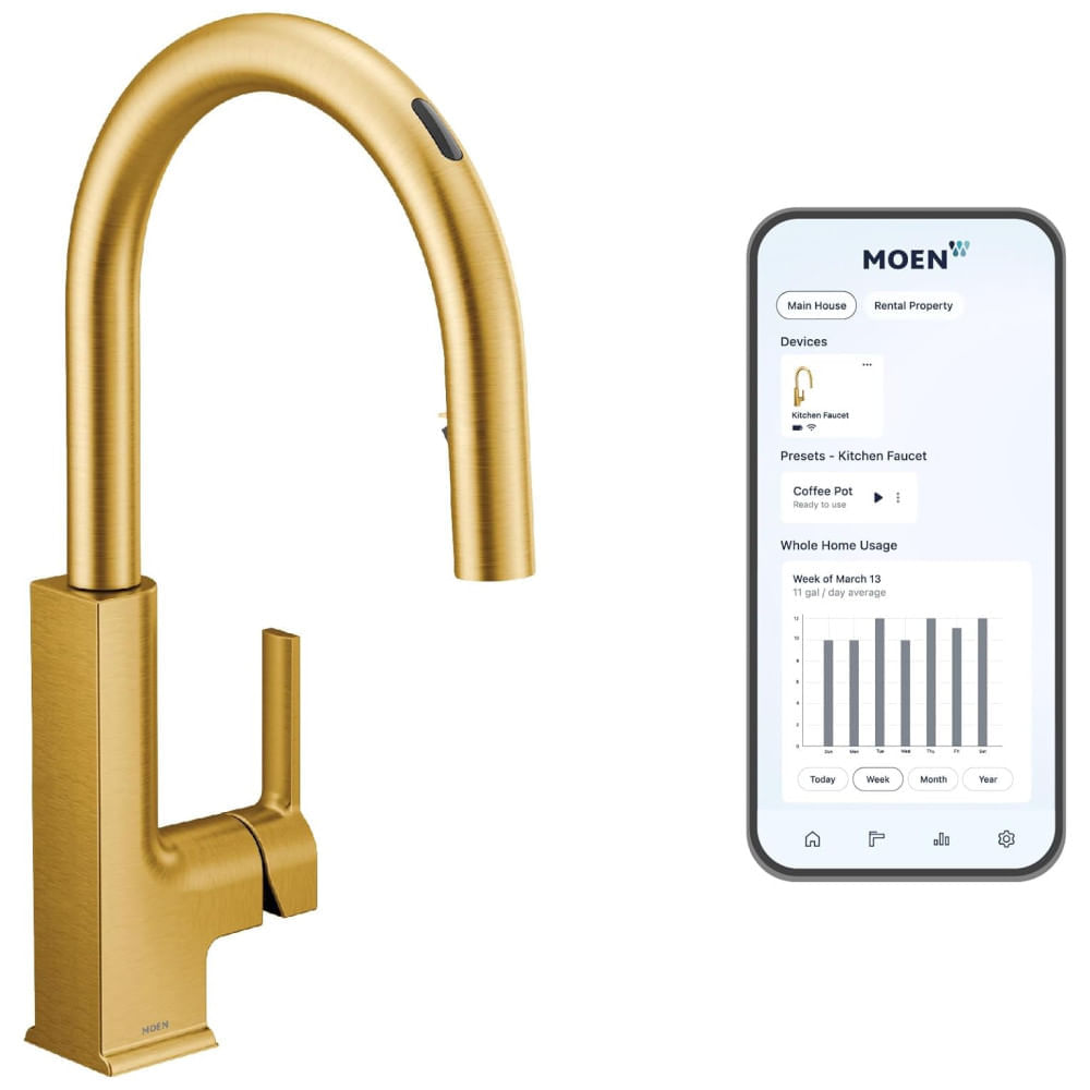 Atenção: Todos os produtos elétricos são 110V e necessitam de adaptador para a tomada no formato Brasileiro. A Moen Smart Faucet é uma torneira de cozinha que traz conveniência para o dia a dia. Com a tecnologia de medição precisa e temperatura exata, é possível operá la por meio de quatro métodos de controle voz, aplicativo, viva voz ou manual. As predefinições personalizáveis permitem que as tarefas diárias sejam realizadas com facilidade, como encher uma mamadeira ou dispensar uma xícara de água quente. Além disso, o recurso sem toque das torneiras de cozinha Moen tem um aceno automático sensor que inicia e interrompe o fluxo de água com um simples movimento da mão. A aparência da torneira é impecavelmente organizada e pode ser transportada em cozinhas contemporâneas. O acabamento em ouro escovado adiciona um toque de sofisticação a qualquer ambiente. Para controlá la por voz, é necessário ter um smartphone, alto falante Alexa ou Google Smart e internet sem fio.