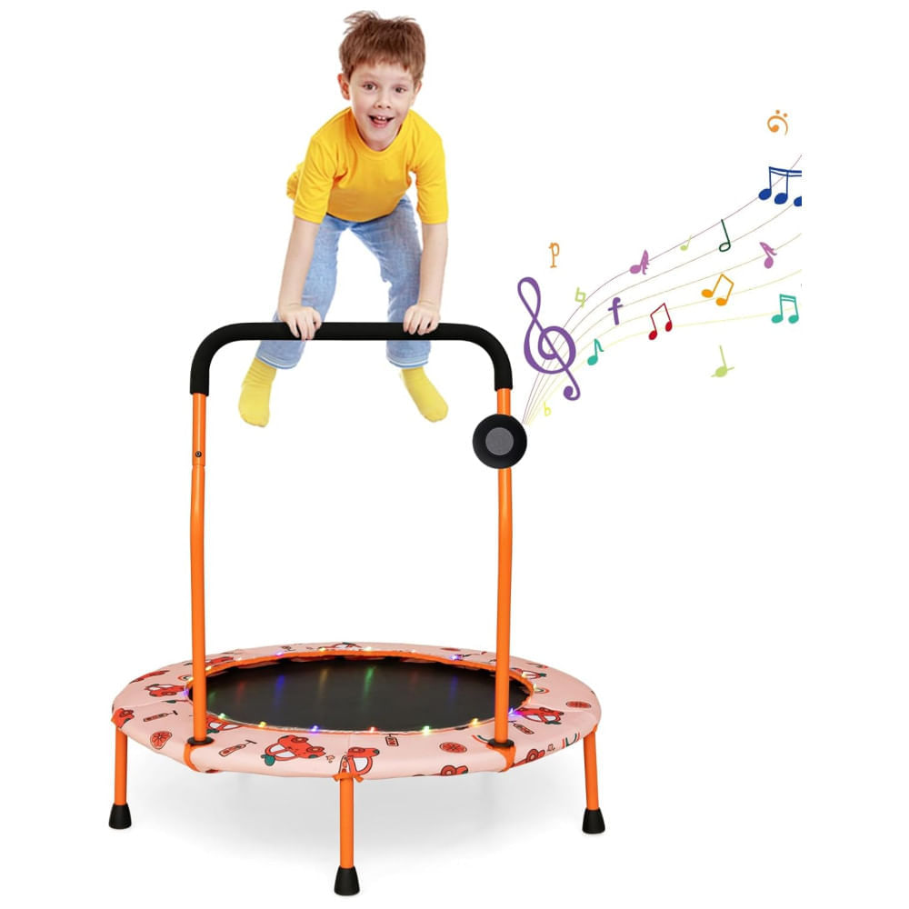 Atenção: Todos os produtos elétricos são 110V e necessitam de adaptador para a tomada no formato Brasileiro. Este mini trampolim atualizado é perfeito para crianças de 3 a 6 anos se divertirem após a escola ou fazerem exercícios que melhorem o desenvolvimento do esqueleto, a força física e a capacidade de equilíbrio. A estrutura de aço à prova de ferrugem possui 5 tubos de perna estáveis com almofadas de pé antiderrapantes e silenciosas, oferecendo uma experiência de salto durável e de alta qualidade. A capa protetora acolchoada macia também é decorada com padrões fofos, enquanto o corrimão com aderência de espuma pode manter as crianças equilibradas durante os saltos. As faixas elásticas e o tapete de salto em PP resistente estão firmemente conectados, proporcionando uma experiência de salto premium e duradoura. O trampolim vem com luzes LED coloridas piscantes e um alto falante Bluetooth recarregável, permitindo que as crianças curtam suas músicas favoritas enquanto pulam. O pacote inclui instruções para fácil instalação, acessórios e sistema de travamento automático. As dimensões totais são de 92 cm x 92 cm x 36 cm C x L x A , com diâmetro da área de salto de 62 cm e distância ao solo de 22,5 cm. O trampolim infantil Goplus é certificado pela ASTM para qualidade e segurança confiáveis, tornando o um ótimo presente para seu filho. Observe que as luzes requerem 2 pilhas AA não incluídas e o cabo de carregamento Bluetooth está incluído. Especificações do produto Cor Azul Marinho Laranja Rosa Material Aço EVA PP PA TPR Tecido Oxford Tamanho do quadro 36 polegadas Tipo de almofada almofada de espuma Formato Redondo Dimensões do produto 91,44 cm x 91,44 cm x 91,44 cm Material da estrutura liga de aço Dimensões do item CxLxA 91,44 cm x 91,44 cm x 91,44 cm Marca Goplus Descrição da garantia Garantia de 90 dias contra defeitos de fabricante Nome do modelo trampolim infantil Usuários sugeridos unissex crianças Fabricante Goplus Estilo laranja, carro Componentes incluídos 1 x cabo de carregamento de alto falante Bluetooth, 1 x alto falante Bluetooth, 1 x guia do usuário, 1 x trampolim infantil com luzes Cor Azul Marinho Laranja Rosa Material Aço EVA PP PA TPR Tecido Oxford Tamanho do quadro 36 polegadas Tipo de almofada almofada de espuma Formato Redondo Dimensões do produto 91,44 cm x 91,44 cm x 91,44 cm Material da estrutura liga de aço