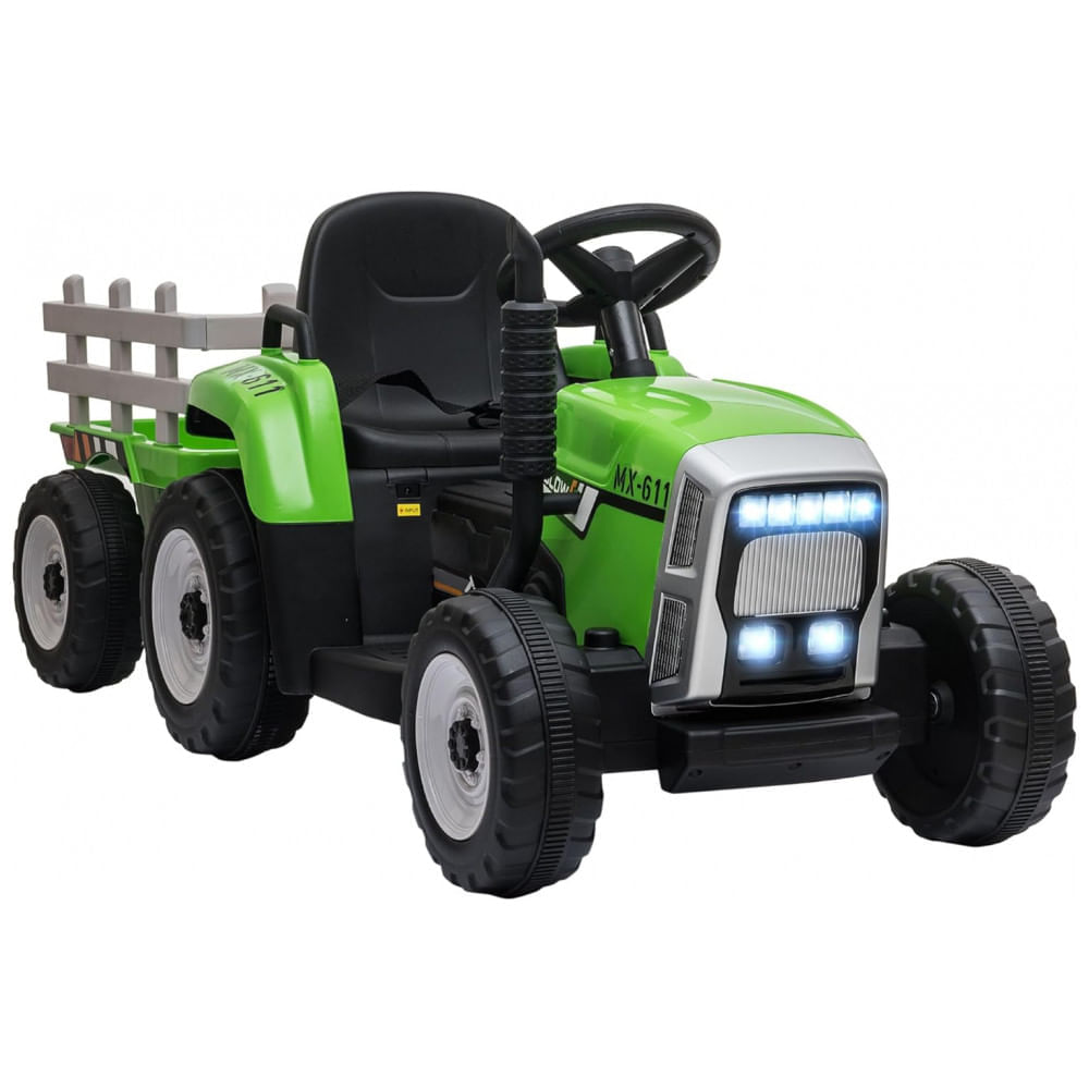 Trator Elétrico Infantil com Controle Remoto, Reboque, Motores Duplos de 25W, Som e Luzes LED, 12V, Aosom, Verde