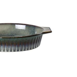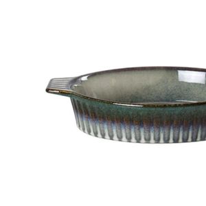 A travessa oval com alça da linha Mist é a união perfeita entre funcionalidade e estética. Com quase 2 litros de capacidade, é ideal para servir receitas mais volumosas com charme. As alças integradas facilitam o manuseio, enquanto o acabamento em cerâmica esmaltada verde confere um toque natural e elegante à sua mesa.