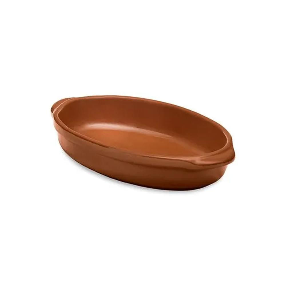 A decoração em tom terracota reforça o estilo campestre da peça. A travessa pode ser utilizada no forno, em temperaturas de até 250°C.