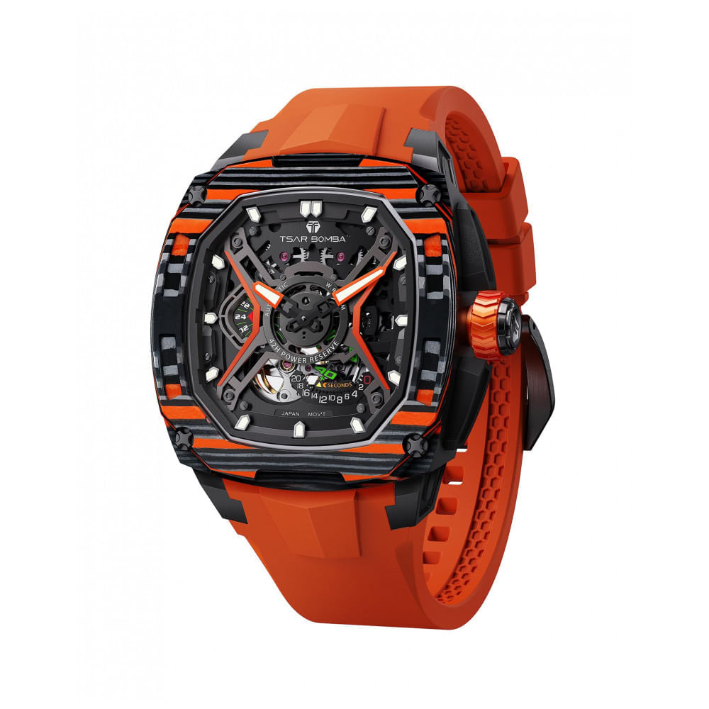 Atenção: Todos os produtos elétricos são 110V e necessitam de adaptador para a tomada no formato Brasileiro. CRIE SEU PRÓPRIO RELÓGIO - O novo relógio TSAR BOMBA Intercambiável oferece uma experiência versátil incomparável. Com pulseiras, coroas e biséis facilmente trocáveis, você pode personalizar seu visual para qualquer ocasião, elevando seu estilo e expressando sua personalidade com um relógio que combina perfeitamente com você. BISEL DE FIBRA DE CARBONO - Equipado com um bisel leve e durável feito de fibra de carbono, este relógio une a estética moderna com materiais de alta performance, proporcionando um visual sofisticado e elegante para quem busca inovação e estilo. PULSEIRA DE BORRACHA FKM - A pulseira em borracha FKM redefine conforto e durabilidade. Ao contrário das pulseiras de borracha convencionais, a borracha FKM resiste a temperaturas extremas, tanto altas quanto baixas. Além disso, protege contra suor e óleo, sendo ideal para o uso diário, desde exercícios intensos até eventos sociais elegantes. RESISTÊNCIA À ÁGUA E ALFA LUMINEX - Com classificação de 5 ATM (resistente até 50 metros), suporta água da chuva, banho e natação sem preocupações. Os mostradores luminescentes exclusivos AlphaLuminex da Tsar Bomba garantem excelente visibilidade noturna para leitura rápida das horas mesmo em ambientes completamente escuros. PRESENTE IDEAL - Os relógios de luxo masculinos TSAR BOMBA são uma escolha perfeita para presentes em negócios, feriados e aniversários! Com movimento de precisão e detalhes esculpidos que refletem luxo e o estilo extraordinário do usuário, este relógio é símbolo de elegância e qualidade imbatível. Especificações: Dimensões do Pacote: 14,5 x 7,5 x 4,5 cm; 250 gramas, Número do Modelo: TB8605A-03, Departamento: masculino, Fabricante: TSAR BOMBA