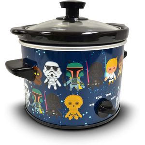 Produto importado dos Estados Unidos o prazo de entrega e de ate 25 dias uteis As importacoes sao oficiais atraves do Regime de Tributacao Simplificada da Receita Federal O preco inclui imposto de Importacao ICMS Frete Nacional Frete Internacional Servicos Alfandegarios e a intermediacao de cambio para pagamento no exterior O preco ja inclui todos os custos nao sera cobrado nenhum valor extra para o recebimento do produto ATENCAO Todos os produtos eletricos sao 110V e necessitam de adaptador para a tomada no formato brasileiro TAMANHO PERFEITO PARA FAS DE STAR WARS Este pote de 2 litros de capacidade e ideal para mais de 2 pessoas seja fazendo jantar para dois almoco para a semana ou um lado para um potluck esta e a melhor ferramenta para um prato personalizado de cozimento lento OPCOES VERSATEIS DE COZINHA Este fogao lento pode ser usado para criar uma ampla variedade de refeicoes deliciosas que estao prontas quando voce estiver bem como um elegante servidor de comida e um refratario 3 configuracoes de calor baixa alta e quente oferecem opcoes para uma variedade de pratos molhos sopas molhos e muito mais FACIL DE LIMPAR O gres e a tampa lavaveis na maquina de lavar louca tornam a limpeza desta panela de barro tao facil quanto fazer refeicoes cozidas lentamente EFICIENTE ENERGETICO Usa menos energia do que os fornos convencionais