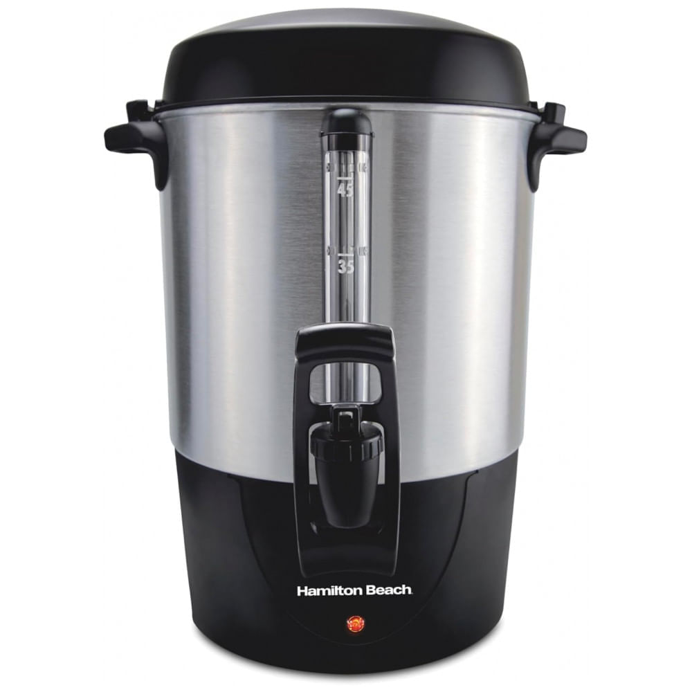 Atenção: Todos os produtos elétricos são 110V e necessitam de adaptador para a tomada no formato Brasileiro. A Urna de Café Hamilton Beach 45 Xícaras é um equipamento comercial projetado para preparar até 45 xícaras de café em apenas 28 minutos, ideal para grandes eventos, escritórios e estabelecimentos comerciais. Equipado com elemento de aquecimento potente de 1500 watts e sistema de aquecimento duplo, mantém o café quente sem queimar ou superaquecer, garantindo sabor consistente. Conta com dispensador de alavanca de fácil acionamento com uma mão, compatível com qualquer tipo de copo, inclusive descartáveis, e bico antiderramamento de aço inoxidável para servir com precisão e evitar sujeira. A urna possui indicador visual de nível de água/café para facilitar o controle e um filtro reutilizável removível que pode ser lavado na lava-louças. Além disso, o design inclui acabamento escovado que facilita a limpeza e resistem a impressões digitais, alças resistentes ao calor para maior segurança no transporte e tampa com trava para evitar vazamentos durante o manuseio. O produto é alimentado em voltagem de 110 V. Ficha técnica Marca: Hamilton Beach Modelo: 40521RZ Capacidade: 45 xícaras (aproximadamente 11 litros) Voltagem: 110 V Potência: 1500 W Material: Corpo em alumínio com acabamento escovado, bico em aço inoxidável Cor: Prateado metálico Dimensões (D x L x A): 31 cm x 30 cm x 38,5 cm Peso: 2,7 kg Funções: Preparo rápido em 28 minutos, manutenção térmica com aquecimento duplo, dispensação com alavanca, filtro reutilizável fácil de limpar, indicador visual de nível Itens incluídos: Urna, filtro reutilizável