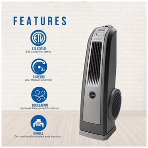 TOTALMENTE MONTADO Este poderoso ventilador de torre vem totalmente montado e pronto para uso. O cabo de alimentação de 1 metro alcança facilmente a tomada mais próxima