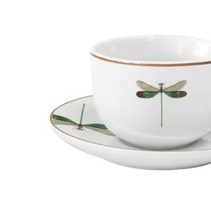 Delicada e encantadora, a xícara com pires Libélula celebra a leveza e a beleza da natureza em cada detalhe. Parte da coleção Pequenos Voadores, é produzida em porcelana de alta qualidade, com acabamento brilhante e decoração inspirada no voo gracioso das libélulas. Ideal para saborear cafés com charme e poesia.