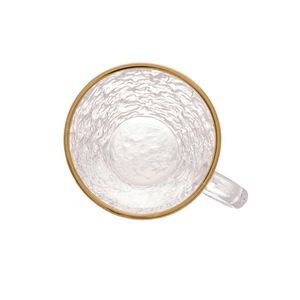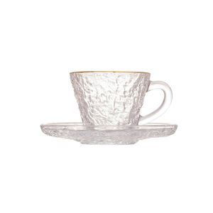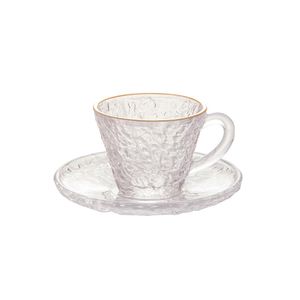 Xícara em cristal martelado para chá com pires e borda dourada Lyor Petra 180ml